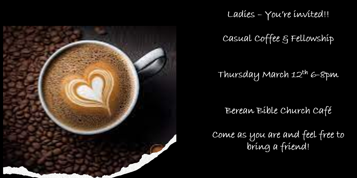 • Mar 12 - Ladies’ Casual Coffee 6-8pm