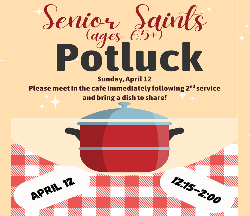 • Apr 12 - Senior Saints Potluck 12:00-2:00pm